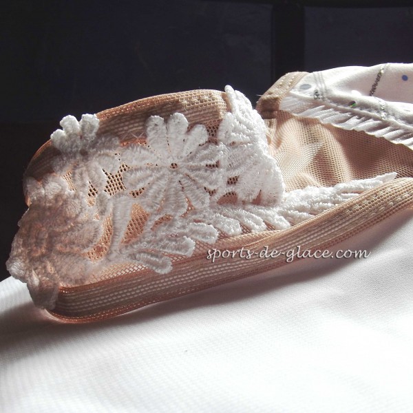 Elite Xpression Ice skating dress, White and silver. Original design by Josiane Lamond. In stock in Y12-14 and ad S