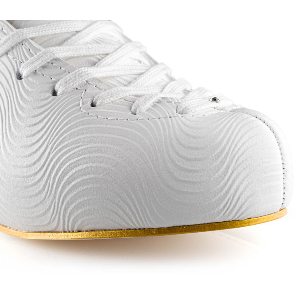 The sole of Wave shows the boot name right in the centre but features the modern look of the white fashion sole with golden profile and white heel, like the Piano: the champions’ choice.