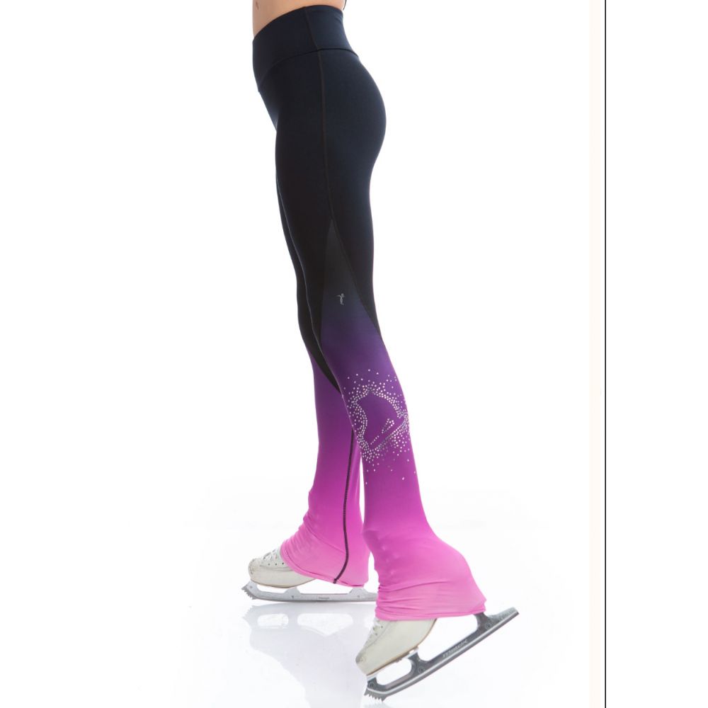 Tye dye pink and black skating pants with rhinestones ice skate design
