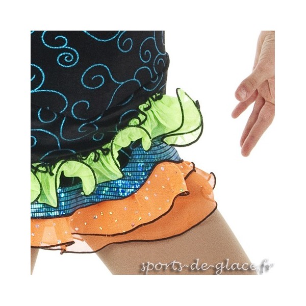 Elie Xpression Pastel Lime and multicoloured figure skating dress, Collection 2014-15 " Character" by Josiane Lamond. In stock in size Y5/6