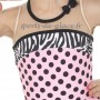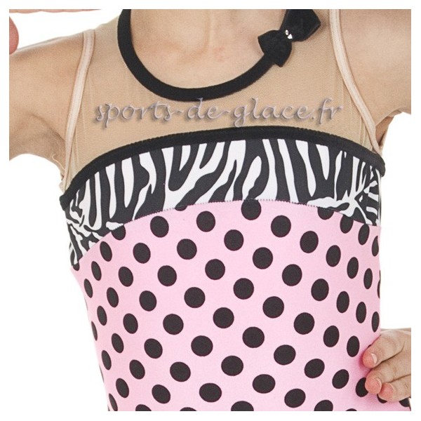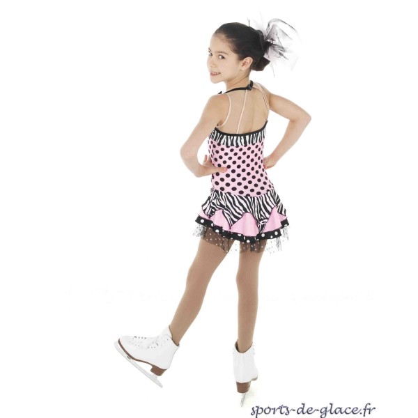 Elite Xpression figure skating dress, Designed by Josiane Lamond, "CrazyTouch... oh la la". Pink, Black and white, in stock in size Y6, Y10 Y12 and S only