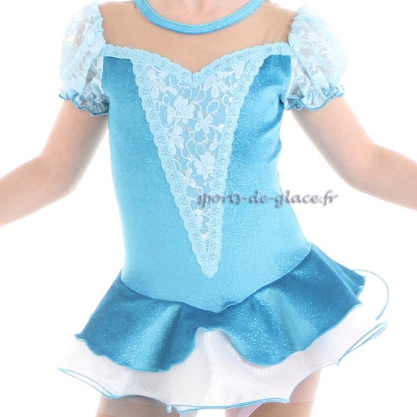 Competition skating dress, blue and white, Collection "Princesses", designed by Josiane Lamond for Elite Xpression. SIZE 4 years last pieces