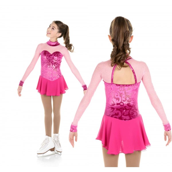 with mesh long sleeves and chiffon skirt