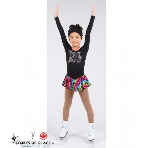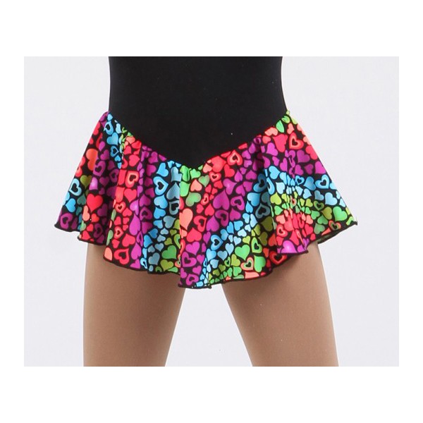 Black supplex dress with multicolored hearts pattern skirt and rhinestones.. LOVE LIVE SKATE by Elite Xpression