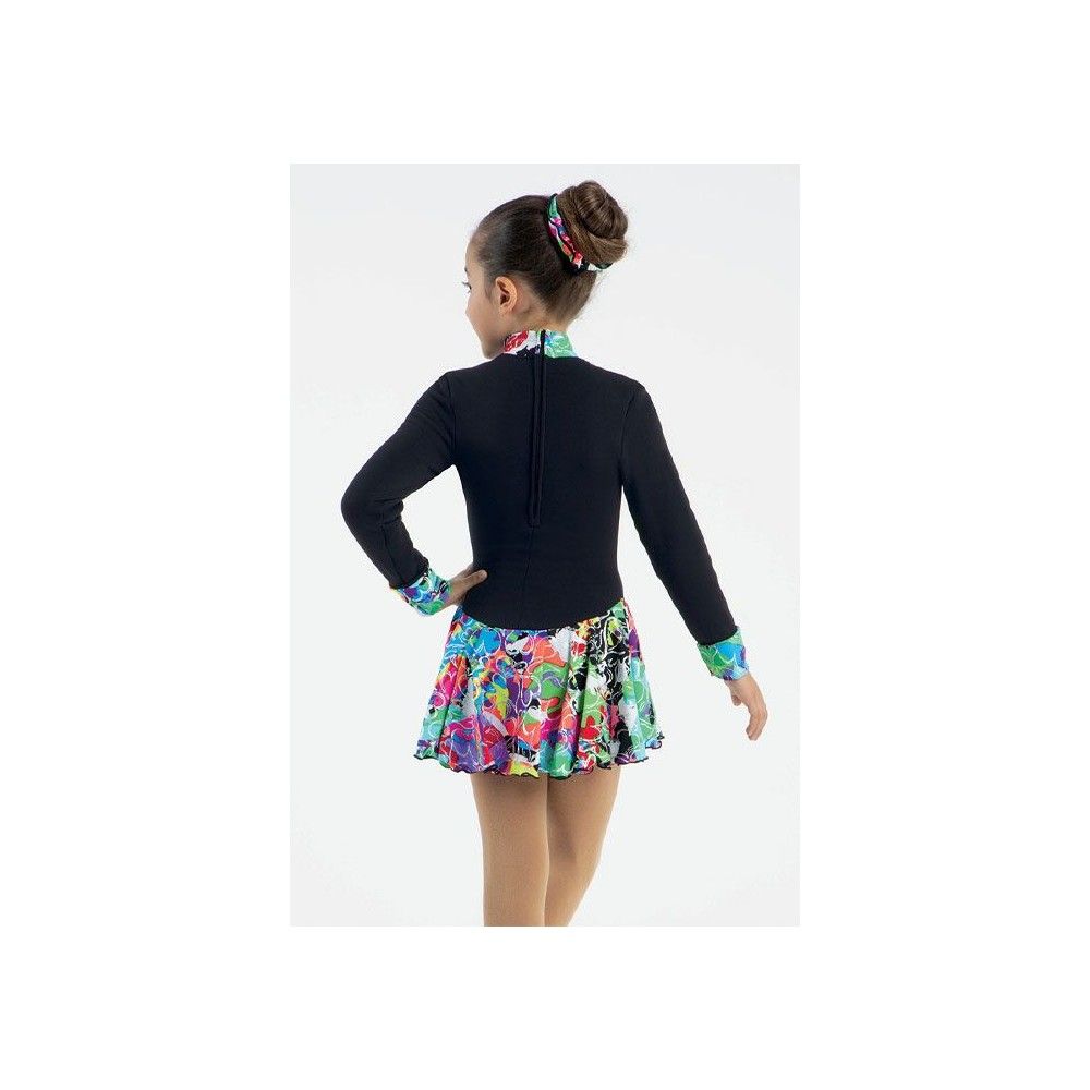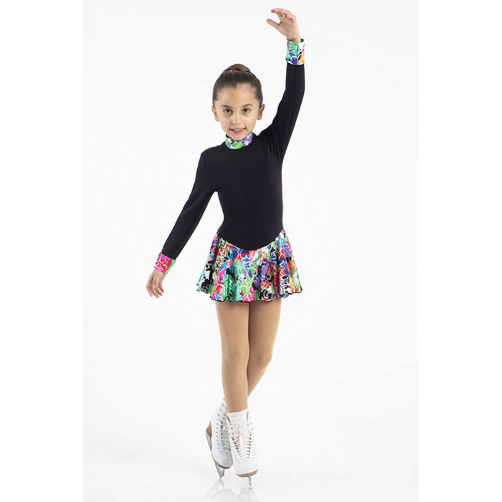 Black warm fleece skating dress with fleece inside. Black with multicolor skit (printed vivid color hearts)