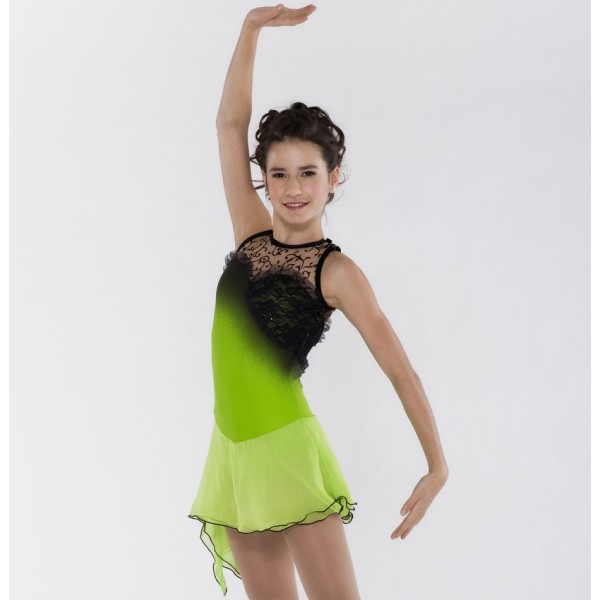 Elite ice skating dress, designed by Josiane Lamond. Black and green. In stock in size Y6-8 only