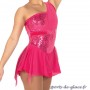 Jolie robe avec buste en sequins recouvert d'un drapé en maille. jupe double crepe georgette et maille mesh voile. Bretelle transparente ajustable.