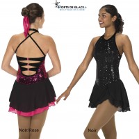 Robe de patinagage Jerry's veloiurs noir motifs pailletés. Pailletée argent et rose fushia ou...