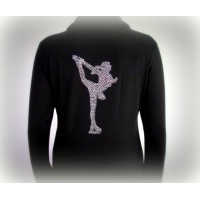 Veste de sport Xpression, noire, thermique, avec motif patin en pierres du Rhin dans le dos....