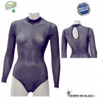 Body voile chair, résille lycra extensible, translucide, coloris noir, A porter sous la tenue ou...