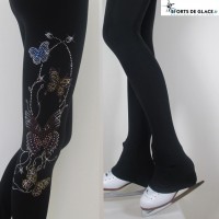 Pantalon d'entrainement de patinage sur glace ou sur roulettes avec spirale de strass. Lycra...