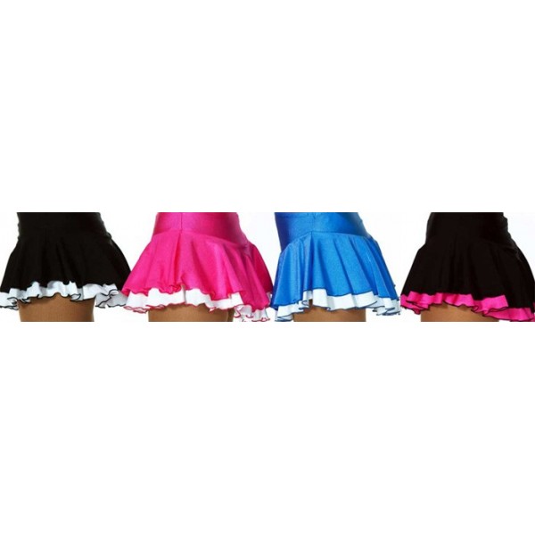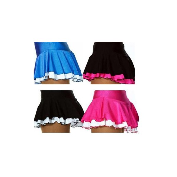 Jupe de patinagelycrajerry's bicolore à 2 volants, culotte intégrée Coloris selon taille, fin de serie, dernières pièces disponibles en : Bleu-Blanc: 4-6