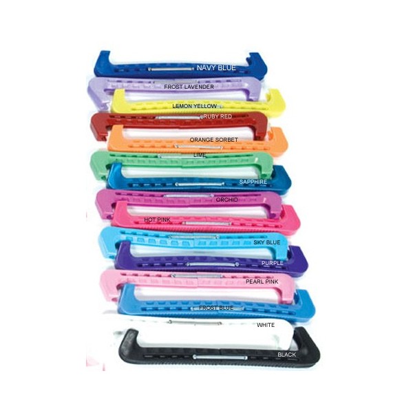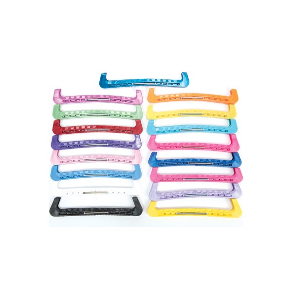 Protèges  lames  en plastique à ressorts, taille unique, adaptables  sur  toutes les lames artistique , danse (pas hockey) ...notice jointe pour le montage. De couleur irisée. S'utilise pour protéger les lames lors des déplacements en dehors de la glace.