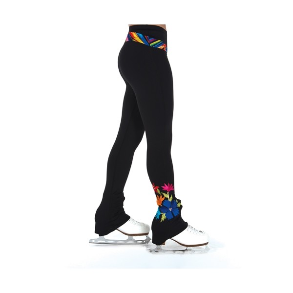 Pantalon Jerry's original, en lycra, couvre talons, large bande colorée à la ceinture, broderie fleurs et strass au bas de jambe. En stock en adulte S, dernières pieces